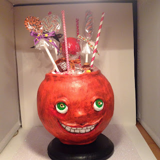 I did try to keep up with the monthly blog sales over at Every Witch Way Lane - I don't know that they are doing them anymore, I know that Patrick Gill of Cre8tor's Touch has also been very busy himself with his family so I don't think there has been many events this year - we will see about gearing up again if Patrick is up to it. We will see. In the meantime, I wanted to share this project - a large Jack O Lantern that I had a lot of fun creating cause it's filled with candy! My grand daughter was VERY upset when I would not allow her to attempt to eat any of it - my daughter dubbed it the "Toddler Torture Bucket" - very clever, my daughter. It's a perfect moniker and a dramatic piece. I still have it on display.